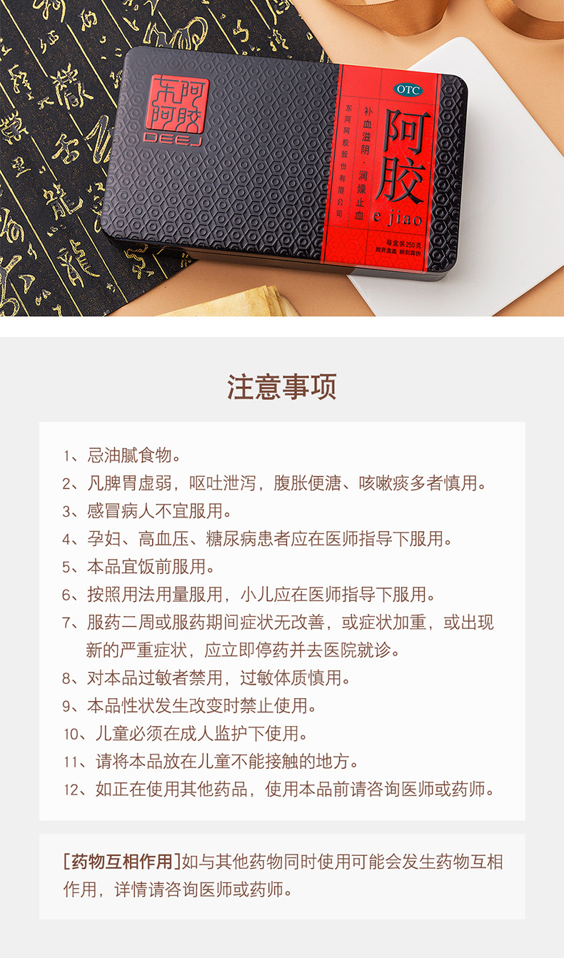 東阿阿膠 阿膠塊250g 紅標(biāo)鐵盒裝 1盒 補(bǔ)血滋陰 潤(rùn)燥止血.