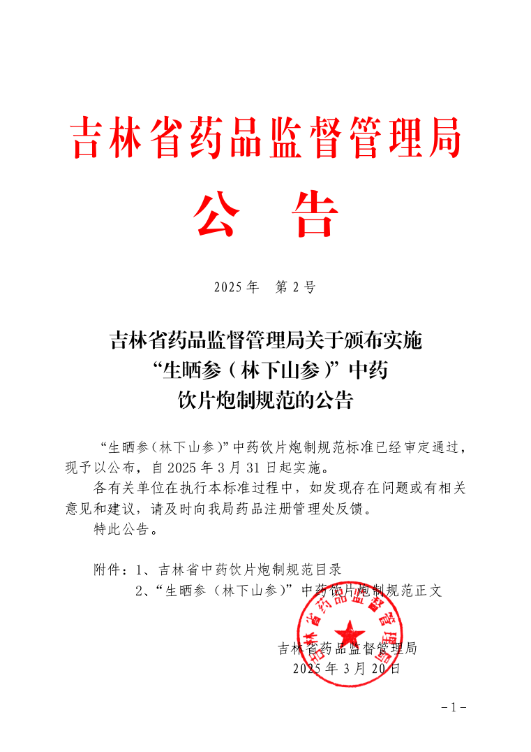 生曬參(林下山參)”中藥飲片炮制規(guī)范