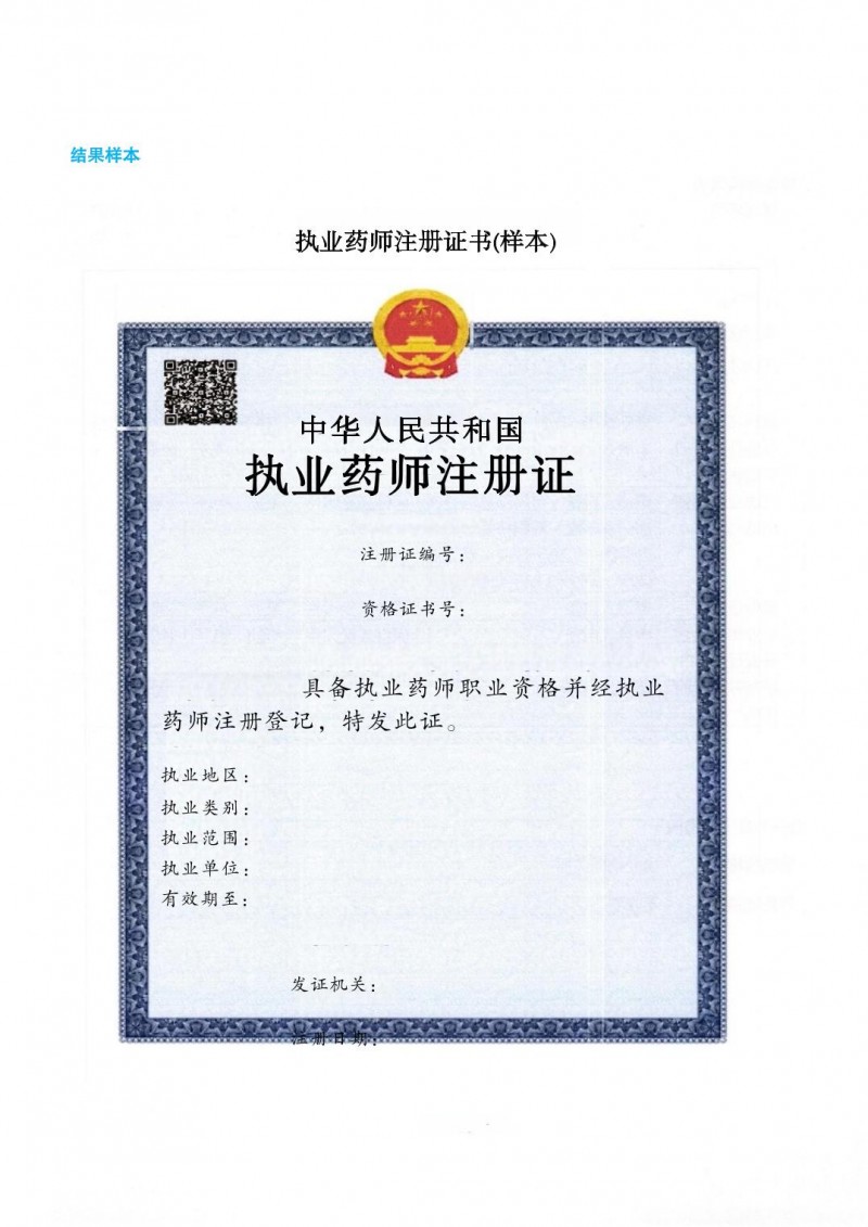 執(zhí)業(yè)藥師注冊證書樣本