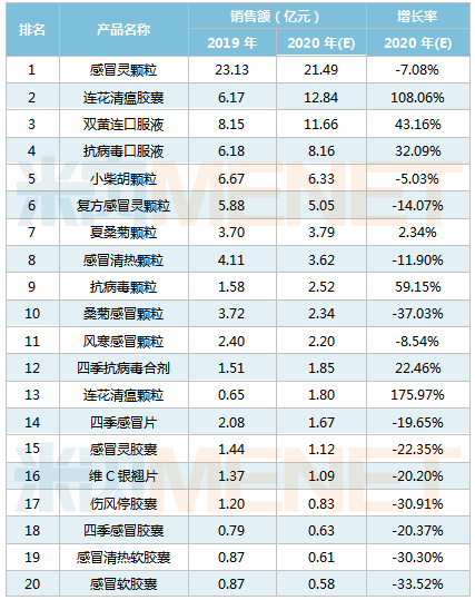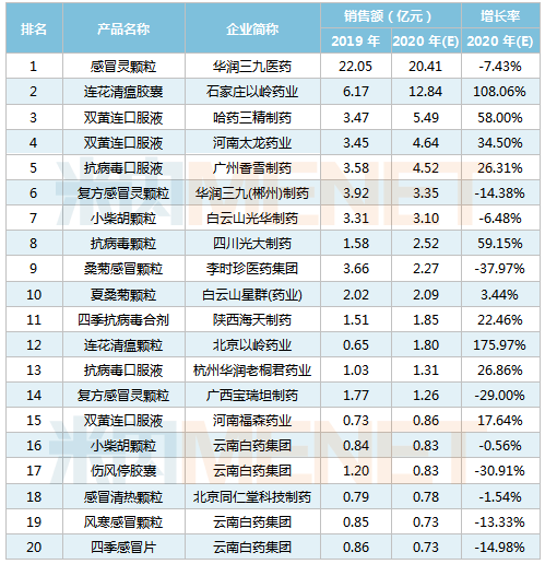 20家感冒中成藥生產(chǎn)廠家及銷售情況。