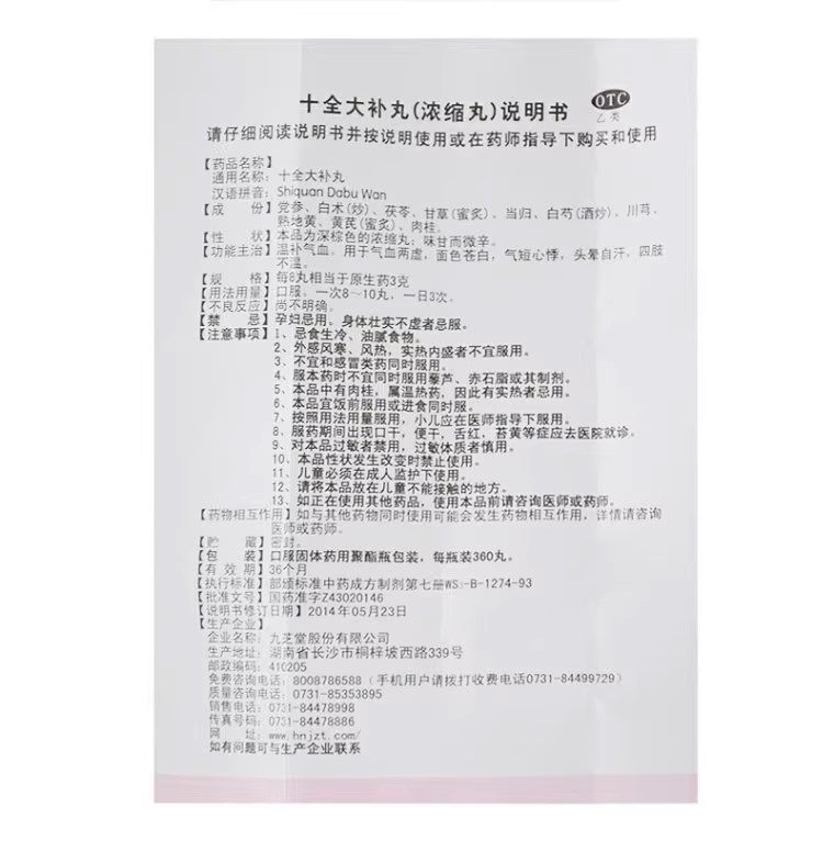 九芝堂 十全大補(bǔ)丸(濃縮丸) 360丸