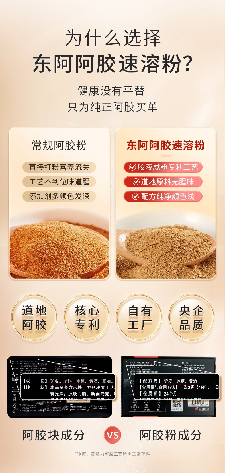 廠址 山東省東阿縣阿膠街78號(hào) 廠家聯(lián)系方式 400-6277788 配料表 驢皮、冰糖、黃酒 儲(chǔ)藏方法 密封,置陰涼干燥處 保質(zhì)期 730天 食品添加劑 無