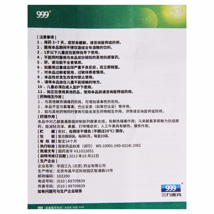 999 小兒氨酚黃那敏顆粒