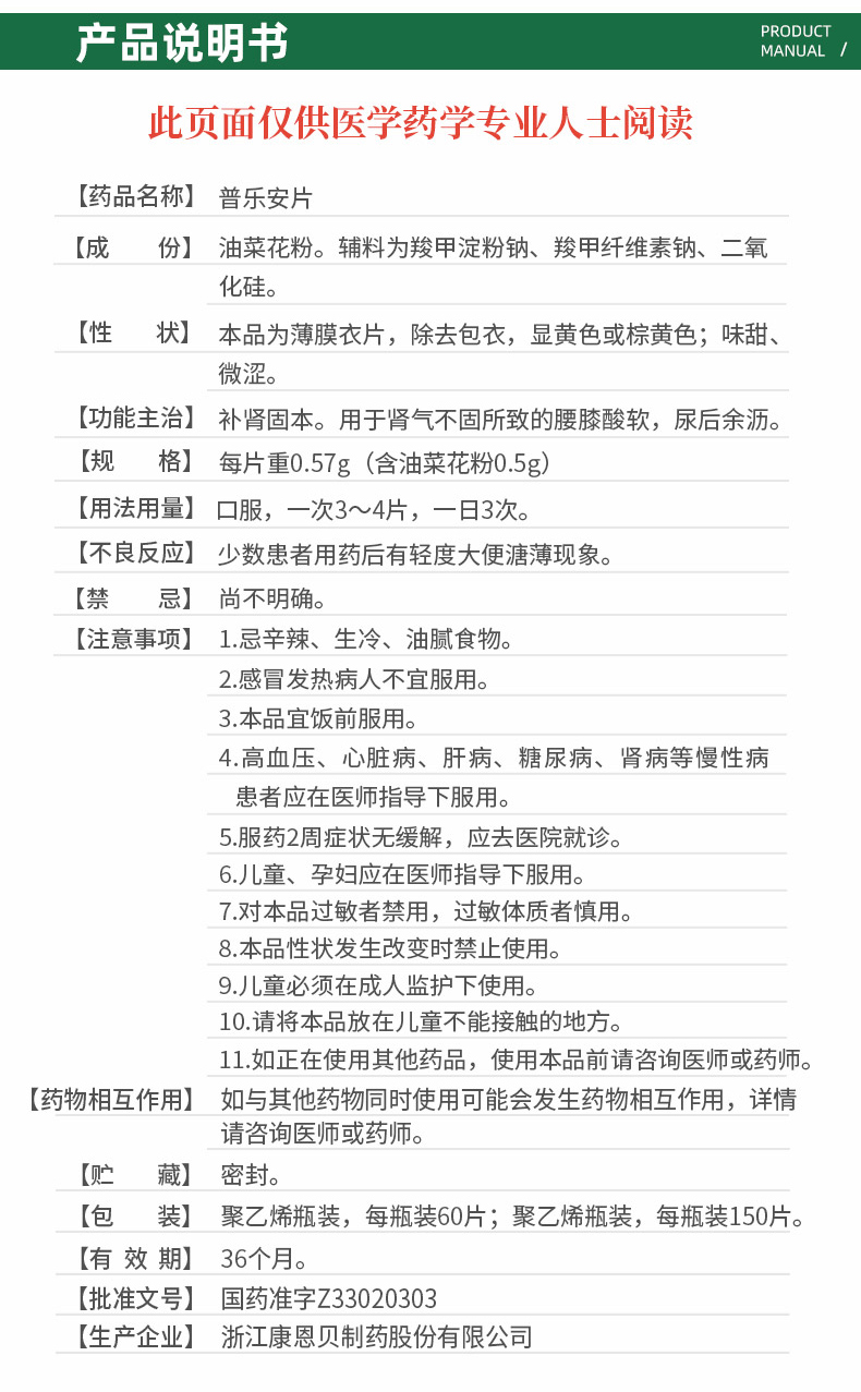 前列康 康恩貝 普樂(lè)安膠囊 0.375g*60片 1盒  補(bǔ)腎固本腰膝酸軟