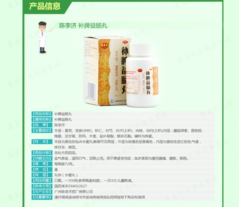 補中益氣,健脾和胃,澀腸止瀉。用于脾虛泄瀉癥,臨床表現(xiàn)為腹瀉腹痛、腹脹、腸鳴。