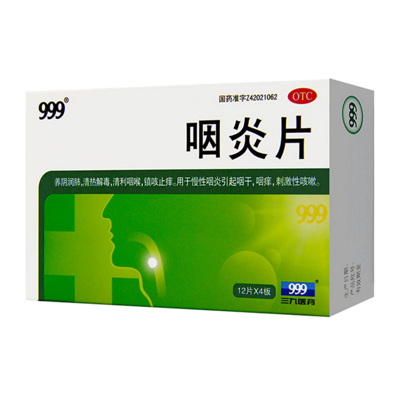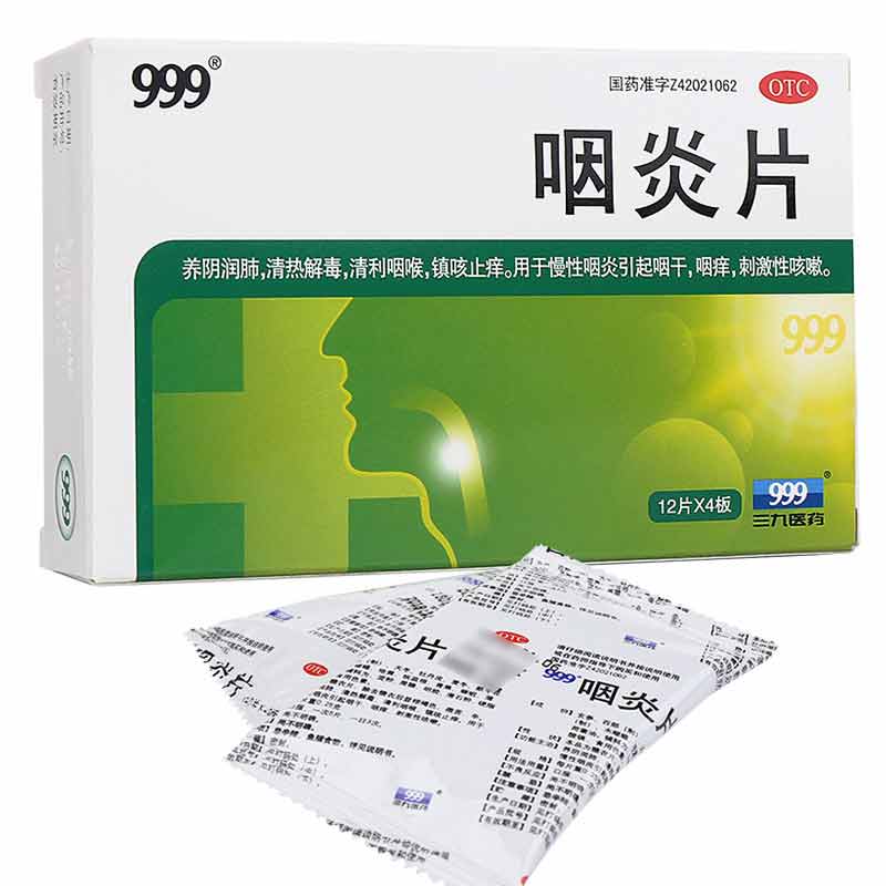 999 咽炎片 0.26g*48片 1盒裝 用于慢性咽炎 引起的咽干咽部刺激性咳嗽