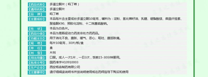 胃動力藥,用于消化不良、腹脹、噯氣、惡心、嘔吐、腹部脹痛。