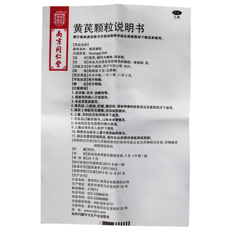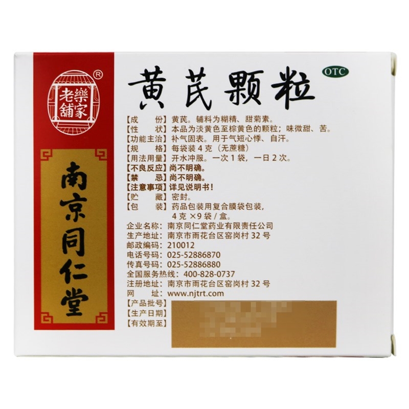 南京同仁堂樂家老鋪 黃芪顆粒4g*9袋 1盒