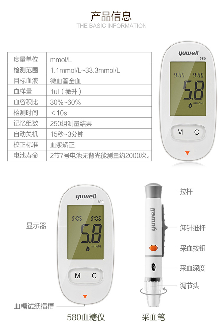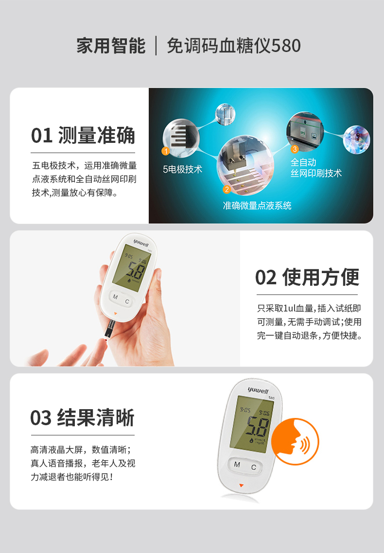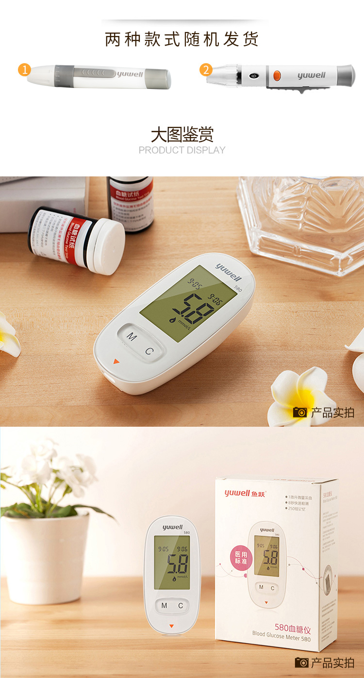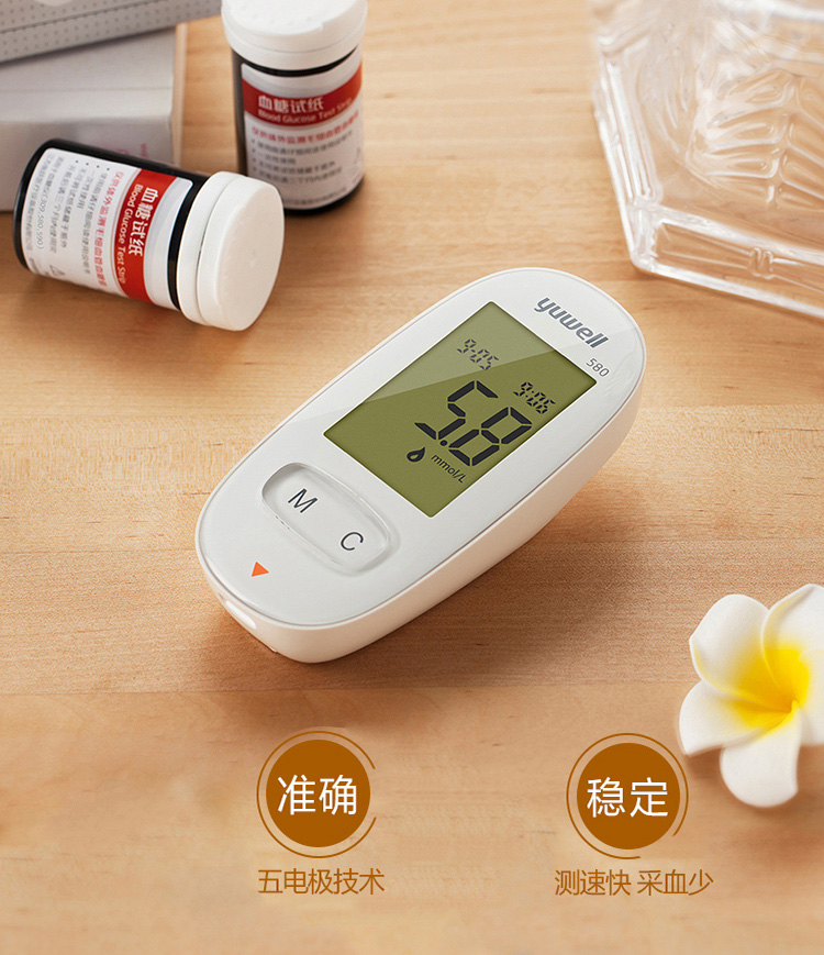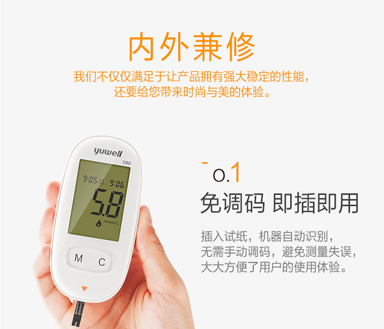 魚躍(YUWELL)血糖儀家用智能免調(diào)碼580血糖測試儀100支瓶裝試紙試條醫(yī)用級精準(zhǔn)血糖儀 注冊證號:蘇械注準(zhǔn)20162400064