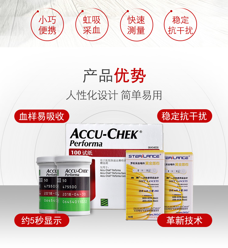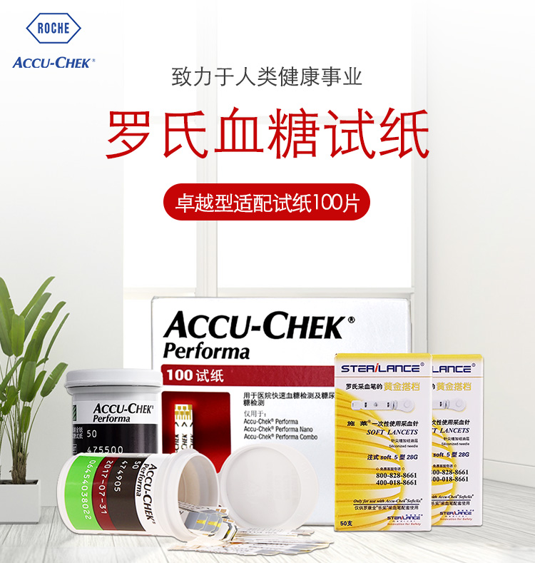羅氏(ROCHE)血糖儀家用血糖試紙 卓越金采型(100片裝+100支采血針)