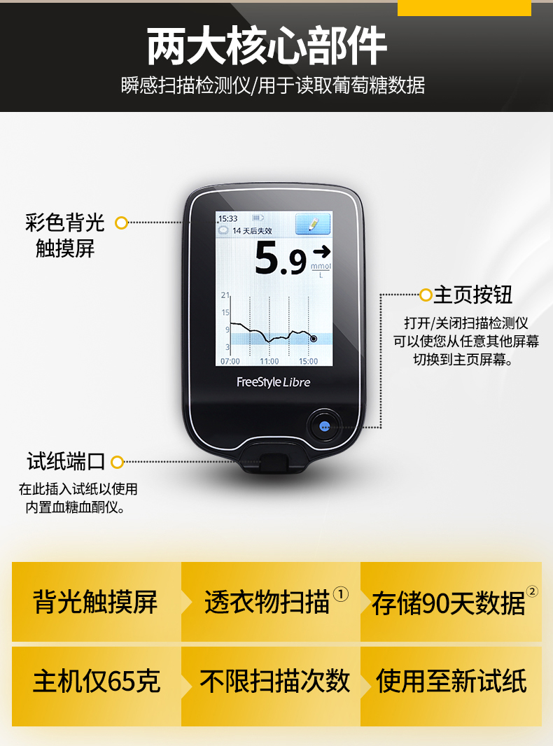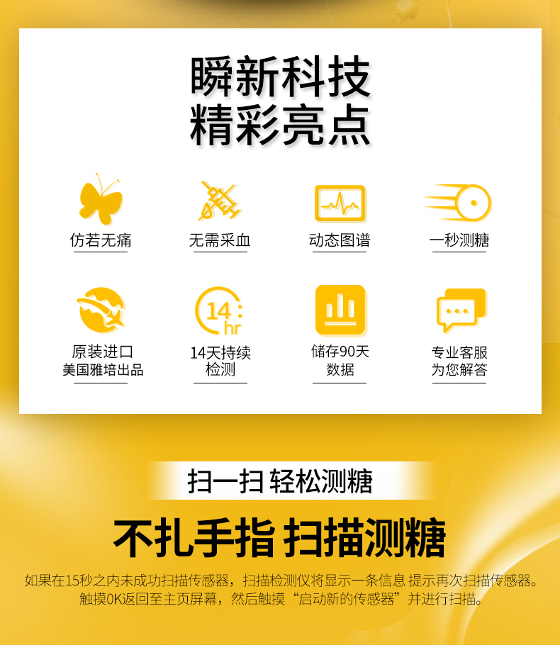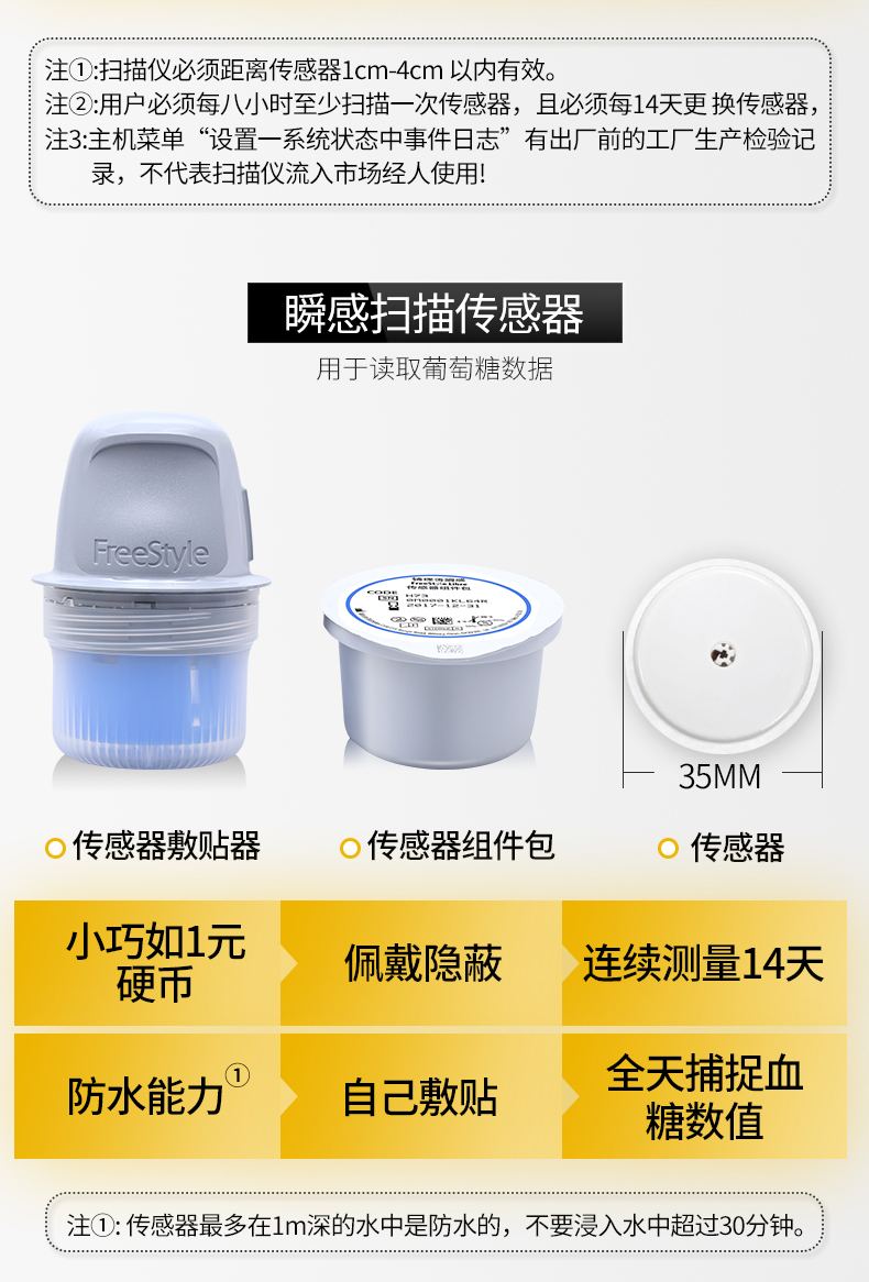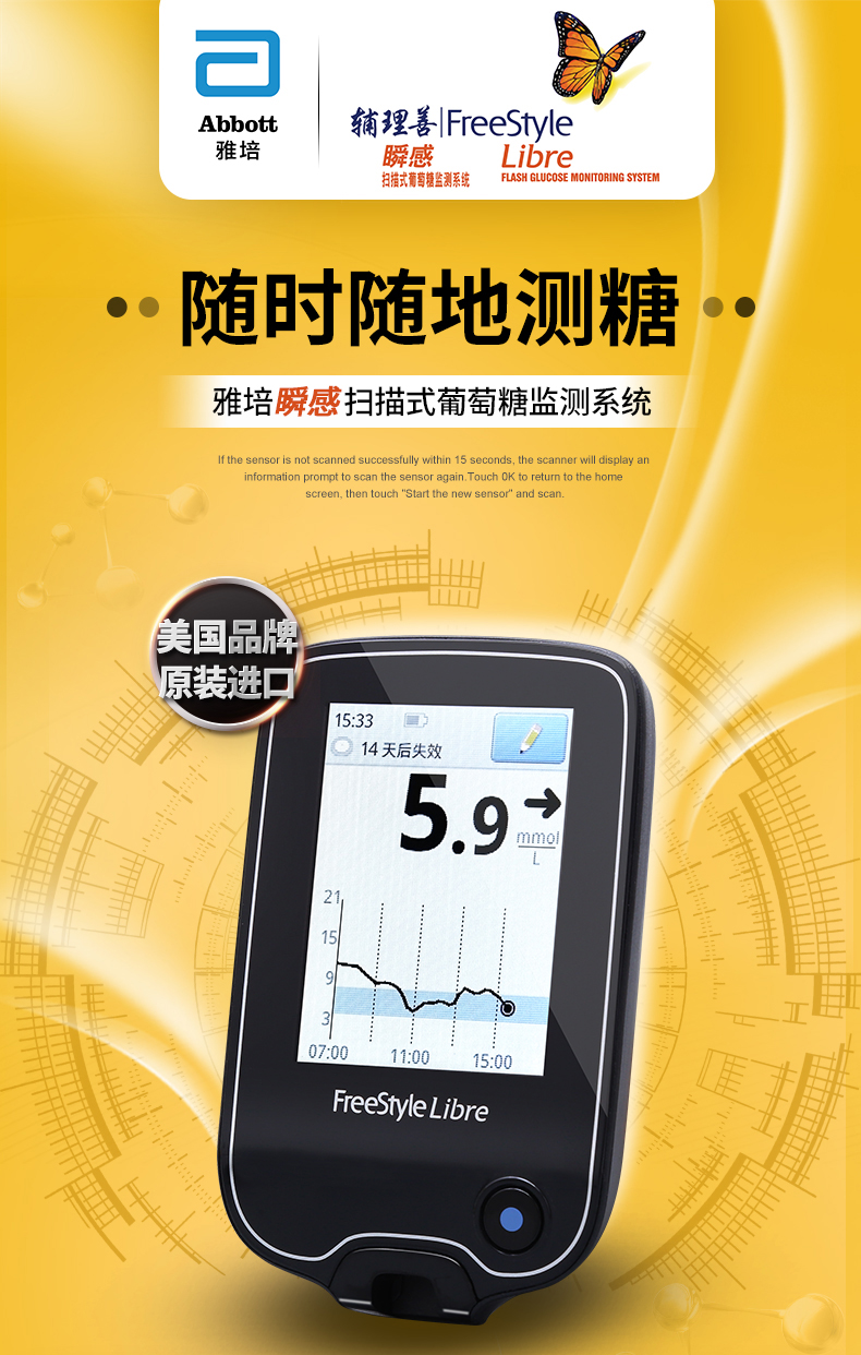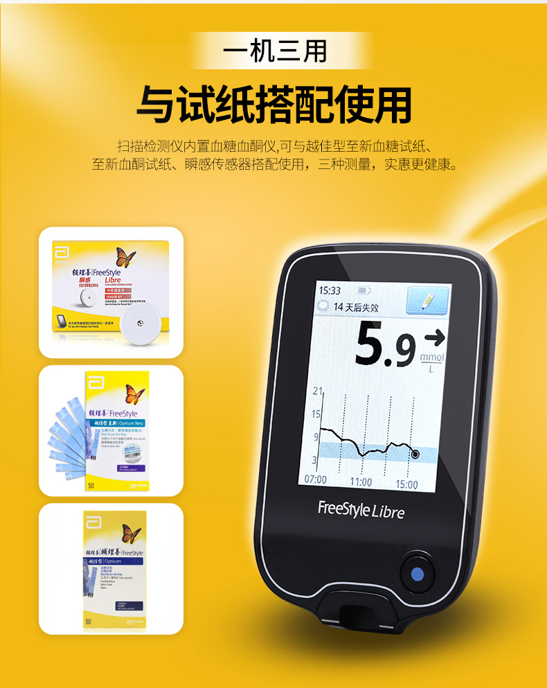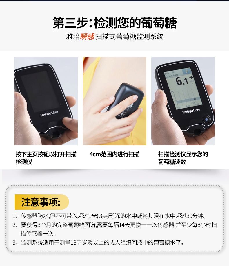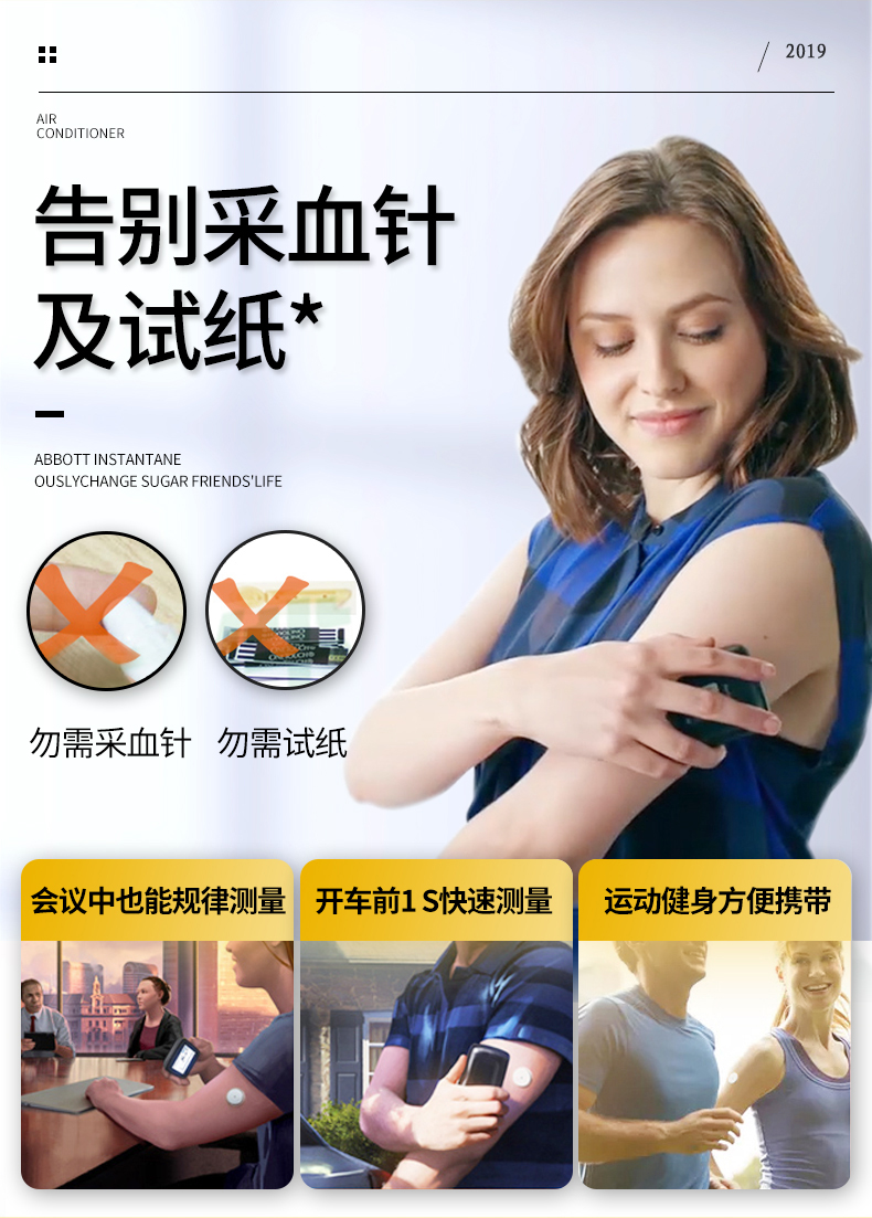 雅培(Abbott)家用血糖儀瞬感動態(tài)血糖儀套裝 1+2型 血糖測試儀檢測儀器。