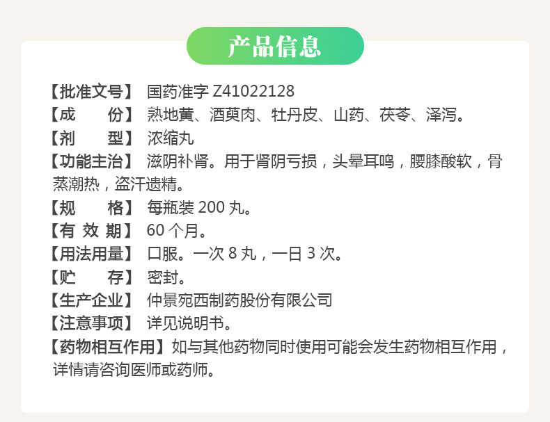 仲景 六味地黃丸(濃縮丸)200丸 宛西制藥 滋陰補(bǔ)腎
