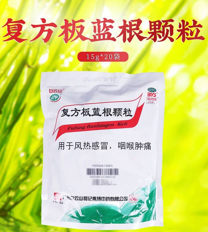白云山 復(fù)方板藍(lán)根顆粒 15克*20袋 1盒 用于風(fēng)熱感冒 咽喉腫痛