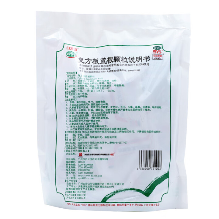 白云山復(fù)方板藍(lán)根顆粒 15克*20袋  1盒