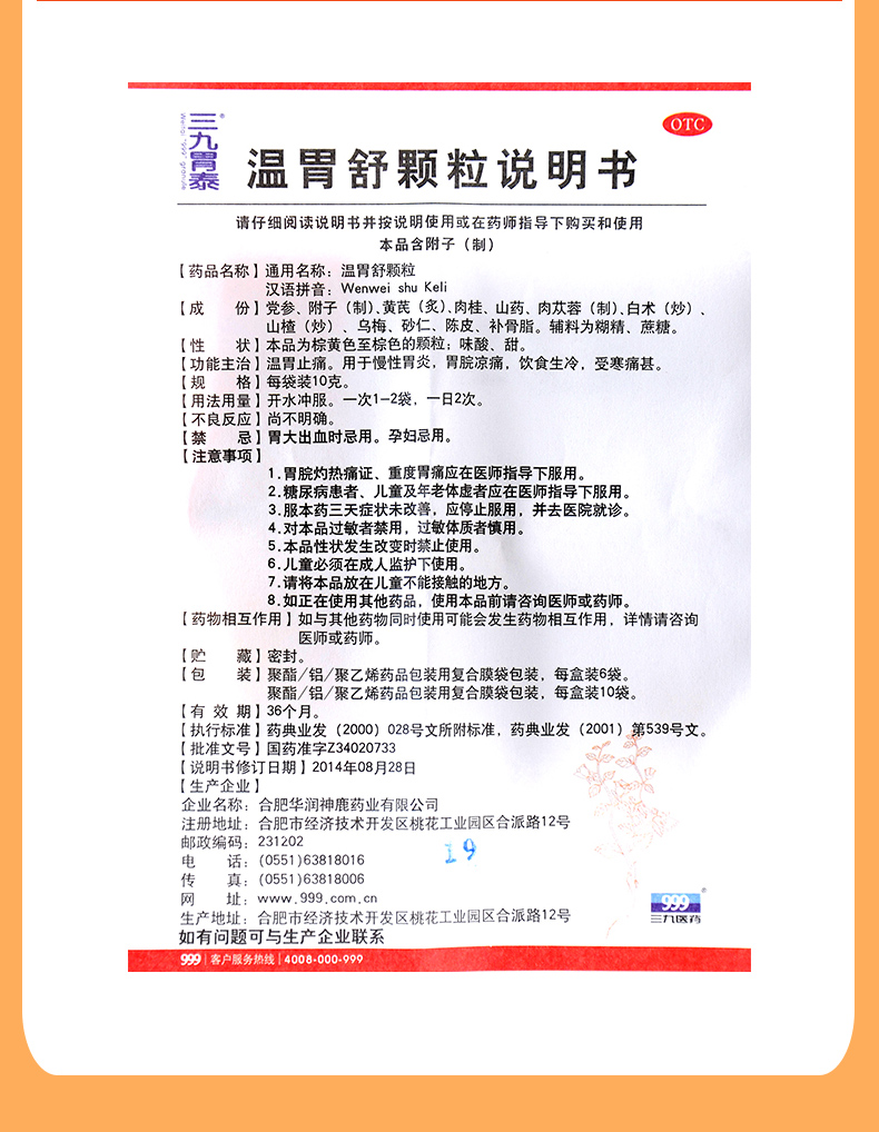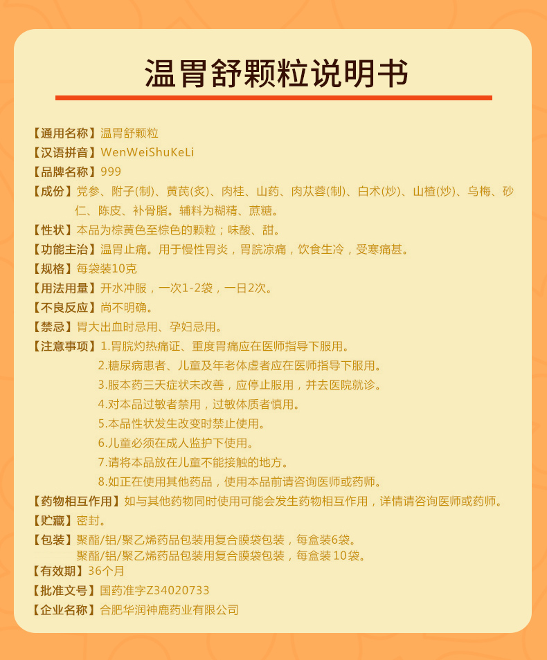 999三九溫胃舒顆粒6袋