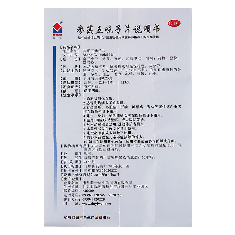 獨(dú)一味 參芪五味子片 50片/瓶 健脾益氣 寧心安神失眠多夢(mèng)健忘乏力 心悸氣短自汗 安神補(bǔ)腦心悸失眠