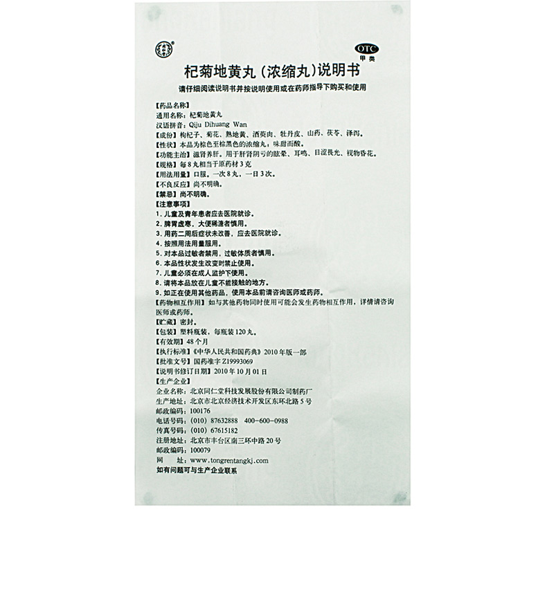 北京同仁堂 杞菊地黃丸濃縮120丸 滋腎養(yǎng)肝