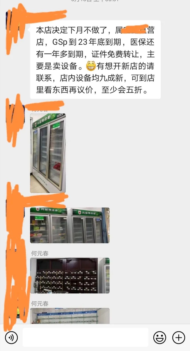 “本店決定下月不做了,屬直營(yíng)店,醫(yī)保還有一年多到期,證件免費(fèi)轉(zhuǎn)讓,主要是賣設(shè)備。有想開(kāi)新店的請(qǐng)聯(lián)系,店內(nèi)設(shè)備均九成新,可到店里看東西再議價(jià),至少會(huì)五折。”這是一個(gè)朋友的店,不干了,預(yù)估最少虧十萬(wàn)以上。